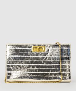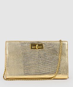 Edward Meller Women’s Nayla Bag With Twist Hardware In Gold Tejus Lizard Print | Goldtejus