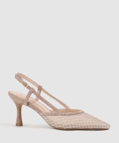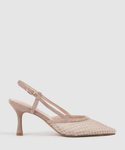 Edward Meller Women’s Delilah75 Mesh Slingback Pump In Nude Suede | Nudesue
