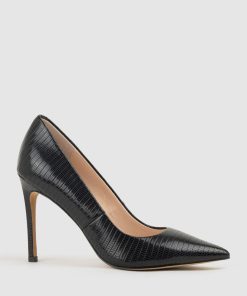 Edward Meller Women’s Allegra100 Pointed Stiletto Pump In Black Tejus Lizard Print | Blatejus