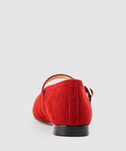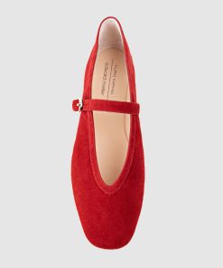 Edward Meller Women’s Flats Flavia Choked Up Ballet With Strap In Cherry Suede | Cherrysue