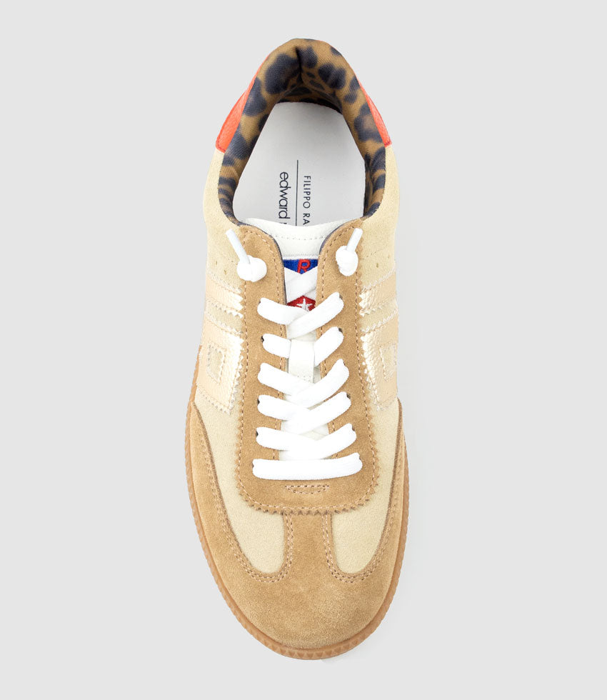 The JESTER sneaker by Filippo Raphael for Edward Meller blends sporty charm with refined craftsmanship. Crafted with a leather upper and fabric lining, it delivers a breathable and durable design. The removable leather-topped inner sole enhances comfort and versatility, making the JESTER an effortlessly stylish choice for everyday wear. Perfect for pairing with both casual and elevated looks.