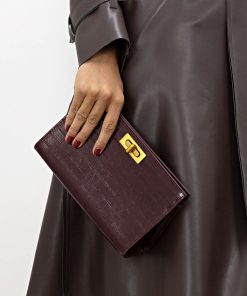 Edward Meller Women’s Nayla Bag With Twist Hardware In Black Cherry Eel Print | Blacherryeel