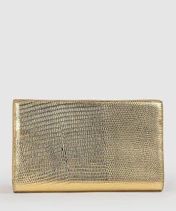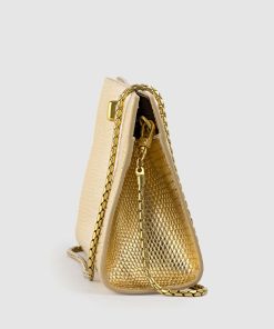Edward Meller Women’s Nayla Bag With Twist Hardware In Gold Tejus Lizard Print | Goldtejus