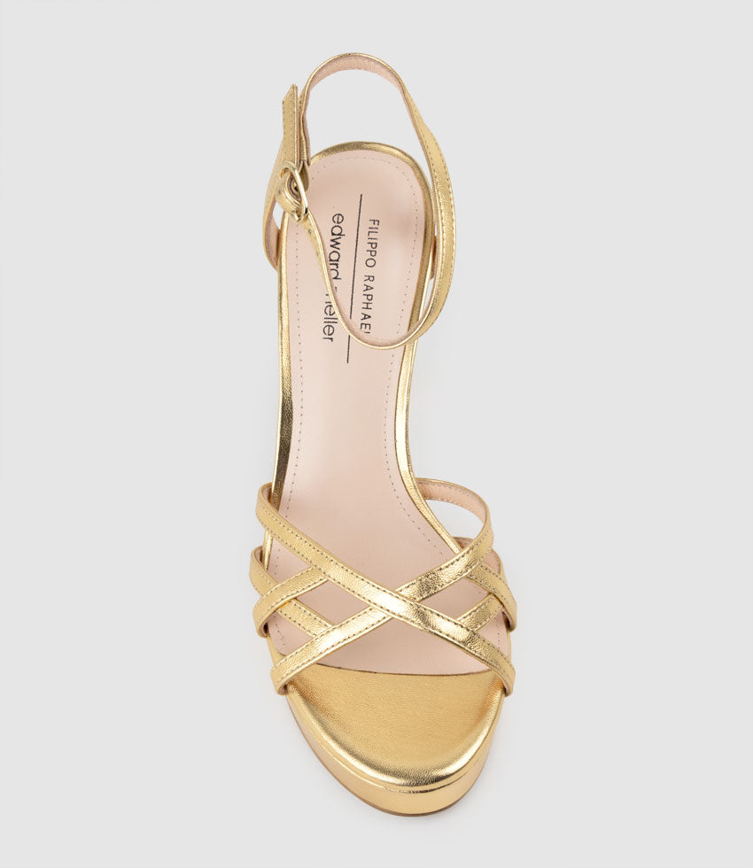 The SAMI110 from the Platinum Collection by Filippo Raphael for Edward Meller is a striking platform sandal that combines height with elegance. Featuring a 110-mm heel balanced by a sturdy platform, these sandals are designed for both style and comfort. The elegant lattice front adds a sophisticated touch, while the delicate ankle strap ensures a secure fit. Perfect for making a statement at any event.