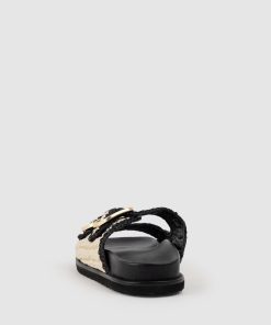 The KROSS sandal by Filippo Raphael for Edward Meller channels relaxed boho style with its wide woven leather straps and statement buckles. Finished with whipstitch detailing for added texture, this two-strap slide sits on a contoured leather sole for all-day comfort. A casual and practical choice for warm-weather days.