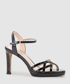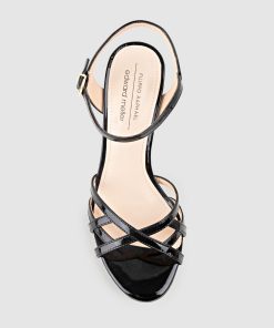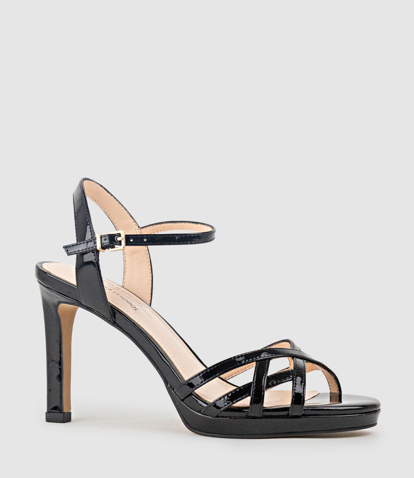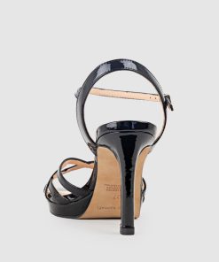 Edward Meller Women’s Swift90 Lattice Front Platform Sandal In Black Patent | Blapat