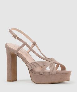 Edward Meller Women’s Syro110 V Strap Platform Sandal In Nude Suede | Nudesue