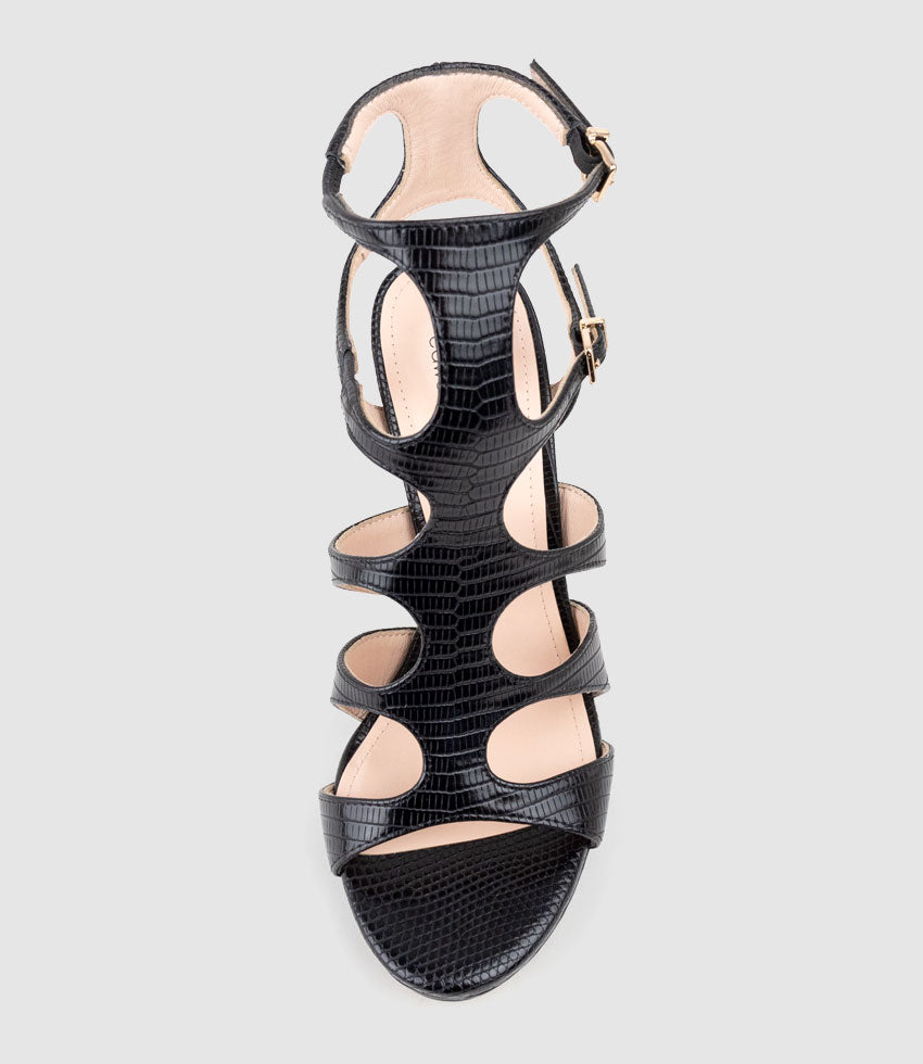 Introducing the WARRIOR110 sandal from the Platinum Collection by Filippo Raphael for Edward Meller, which commands attention with its striking gladiator-inspired design. Featuring a foot-framing silhouette, this sandal is set on towering 110 mm heels balanced by a small platform for added comfort. Perfect for special events or infusing everyday looks with a touch of glamour, the WARRIOR110 was a standout on the Carla Zampatti 60th Anniversary Runway. This style is the epitome of bold sophistication, available in a range of stunning finishes.